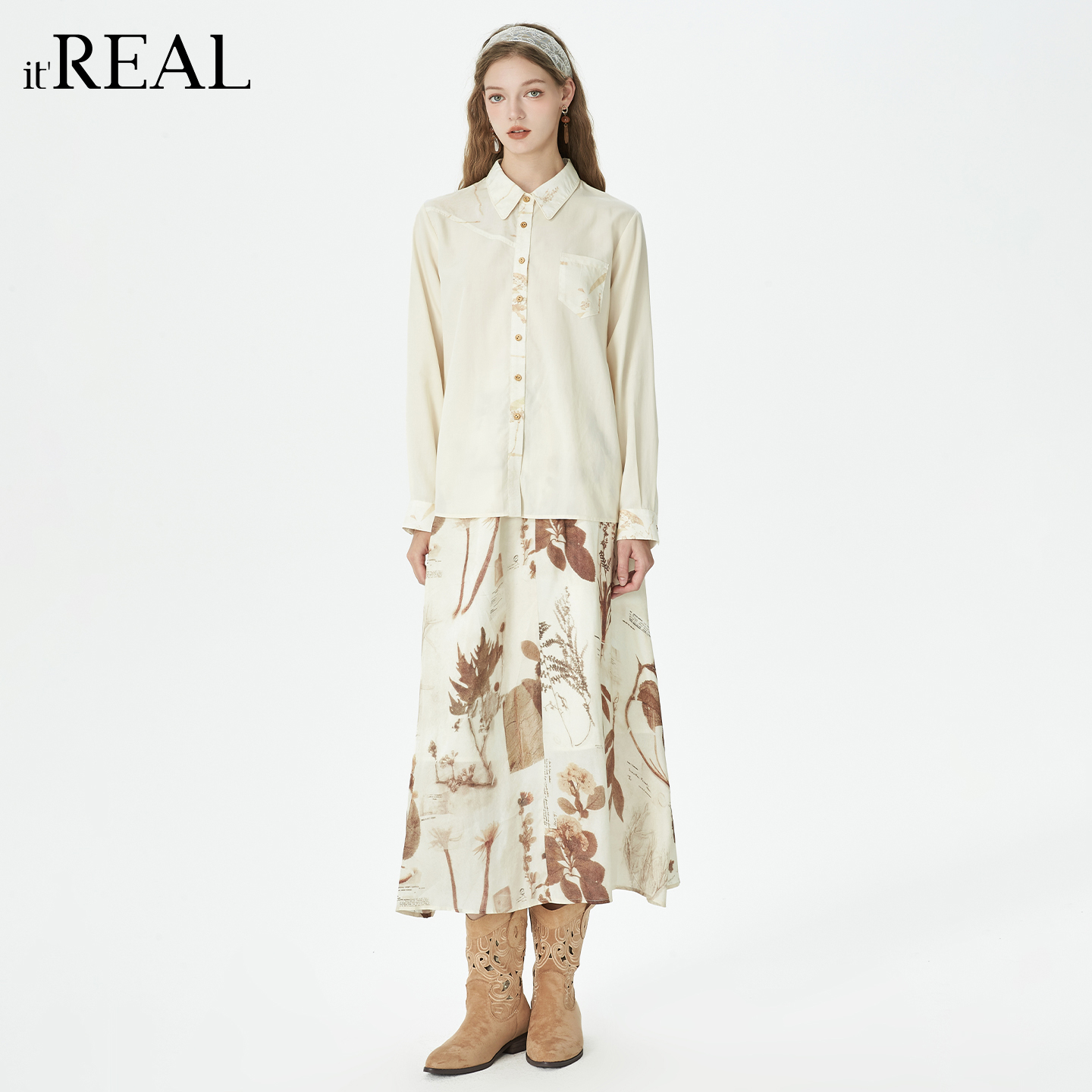 气质莱赛尔印花提花衬衫 法式 新款 上衣女 real瑞尔25年秋季
