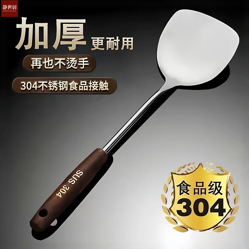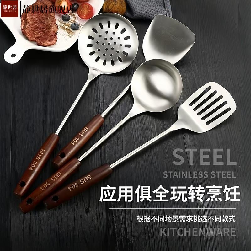 加厚不锈钢锅铲加长柄炒铲炒勺汤勺家用套装 厨房炒菜厨师用勺大号