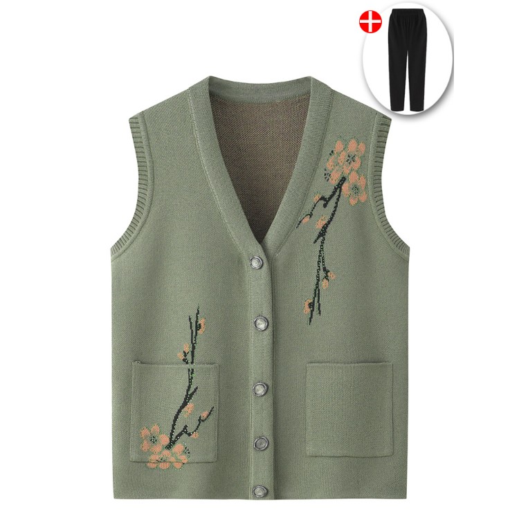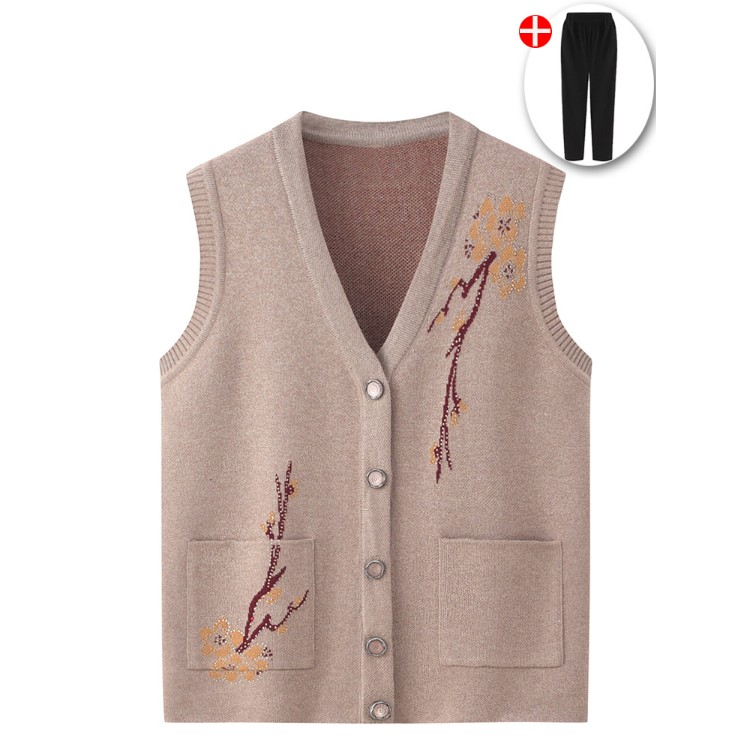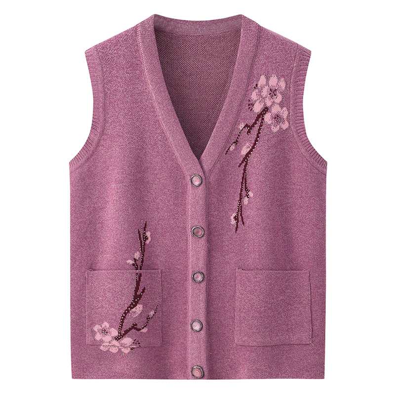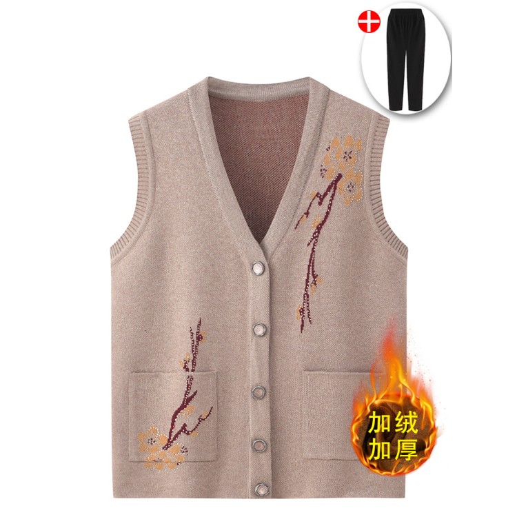 老年人马甲女春秋加绒奶奶毛衣妈妈装 秋冬外套老太太老人衣服 开衫