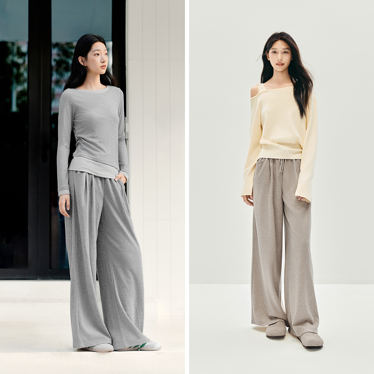 女秋季 子慵懒糯米裤 打褶垂感宽松阔腿裤 简约裤 2025新款 森马休闲裤