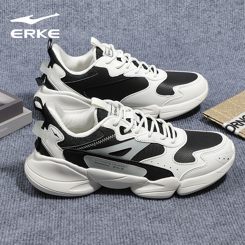 防臭黑色皮面休闲防泼水软底运动鞋 鸿星尔克男鞋 新款 2025秋季 正品