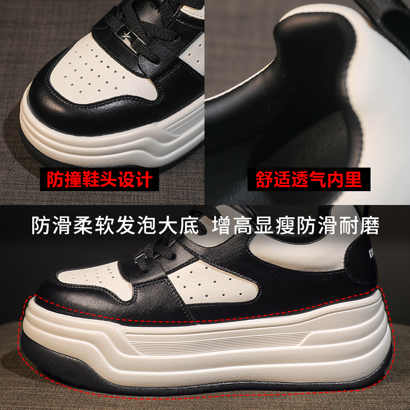 板鞋 子面包鞋 女款 超火真皮内增高运动休闲鞋 2025新款 厚底小白鞋