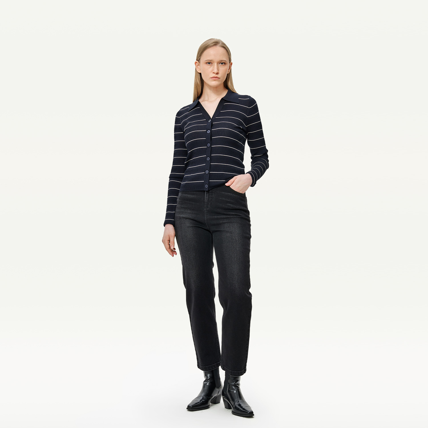 诗凡黎经典 25秋女伊芙丽outlets店 水洗磨毛直筒高腰显瘦牛仔长裤