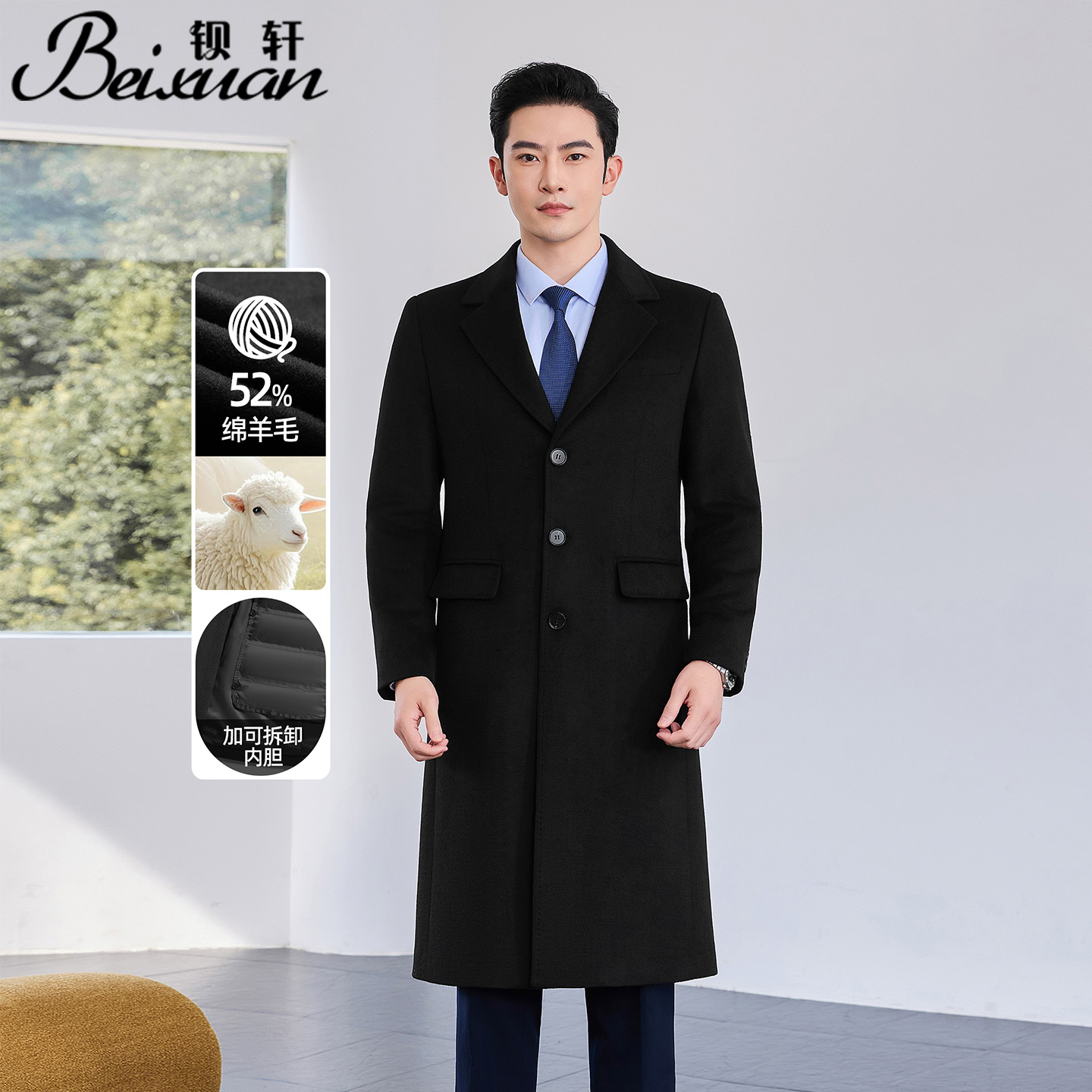 可拆内胆毛呢大衣2025秋季 罗蒙男士 一衣三穿外套b 商场同款
