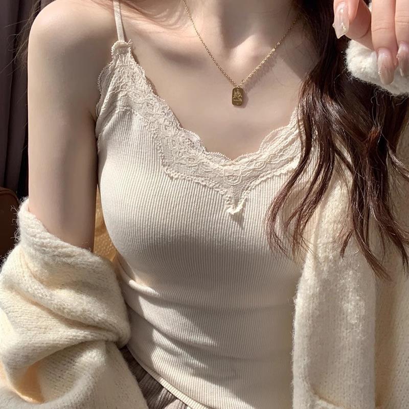 德绒保暖吊带背心女2025新款 秋冬内搭加绒发热无痕带胸垫一体内衣