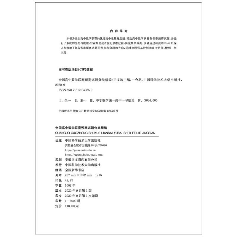 中科大 王文涛奥林匹克竞赛教材一试二试适合参加数学联赛2021高考自主招生培优强基计划 全国高中数学联赛预赛试题分类精编 CMO