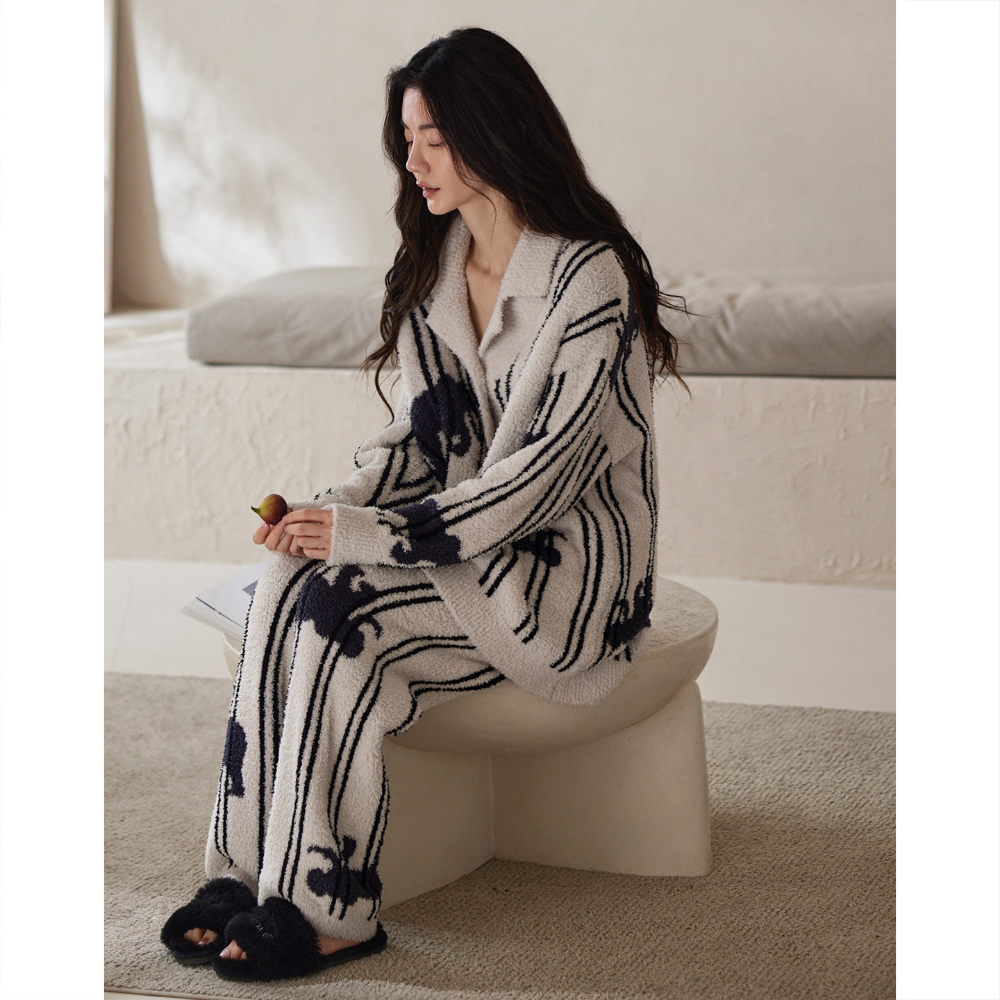半边绒睡衣女士冬季 加厚加绒保暖秋冬珊瑚绒休闲可外穿毛绒家居服
