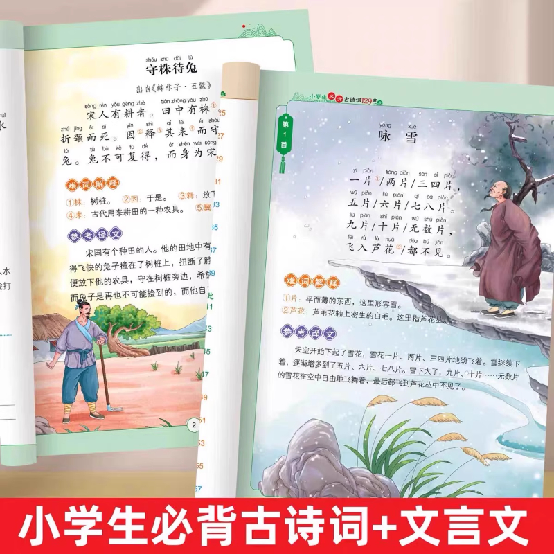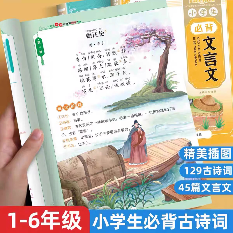 语文课本同步经典 6年级人教版 古诗文带拼音注释译文 小学生必背古诗词129首必背文言文45篇必背古诗文背诵打卡计划彩图注音版