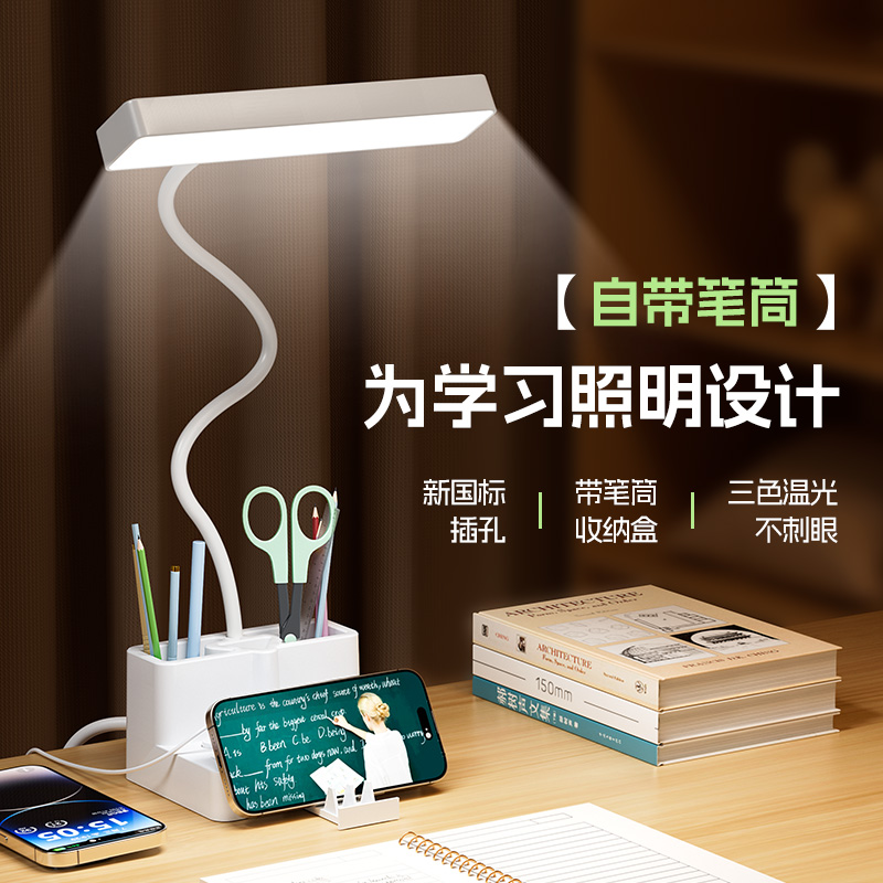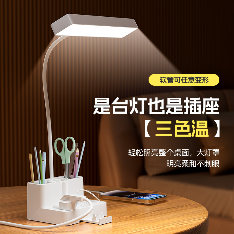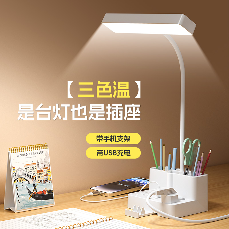 LED台灯插座学习护眼带笔筒手机支架睡眠灯宿舍桌面阅读台灯