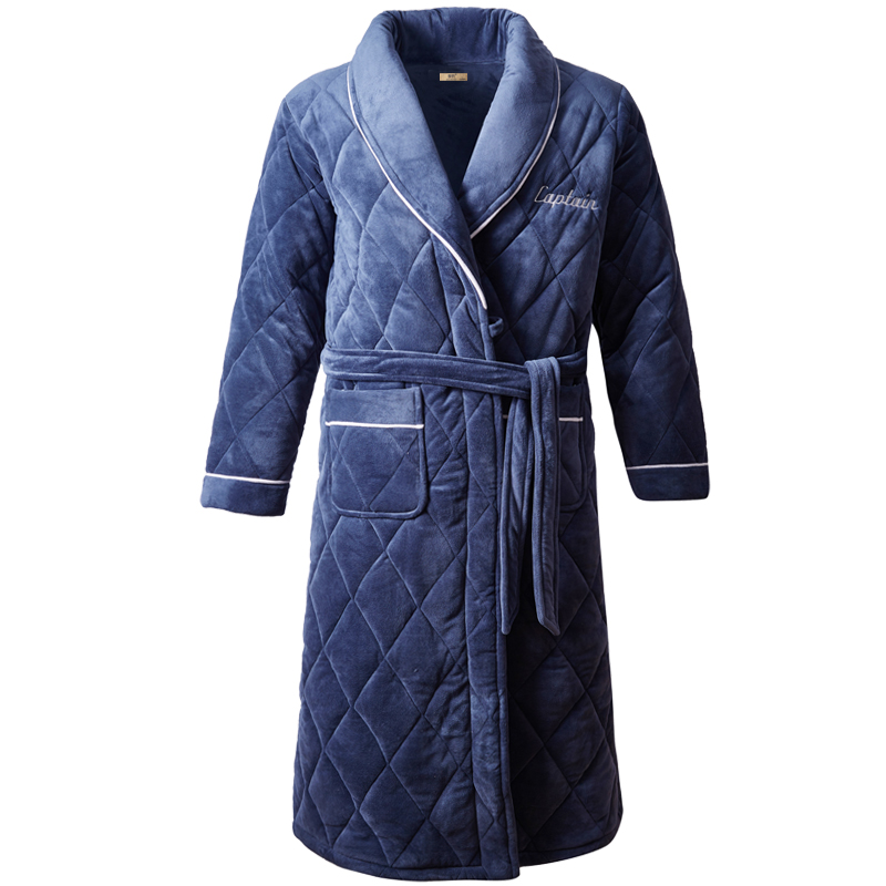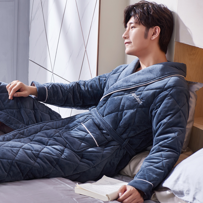 三层浴袍 加厚珊瑚绒睡衣加绒夹棉湖南省服连体长款 男士 睡袍秋冬季