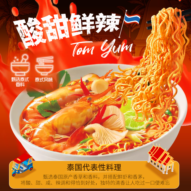 养养牌冬阴功方便面多味70g 泰国进口批发速食面 30袋整箱泡面袋装