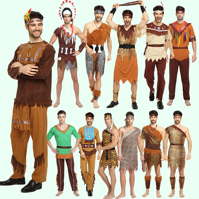 野人服装 原始人非洲野人印第安人衣服男女豹纹土著人猎人演出服