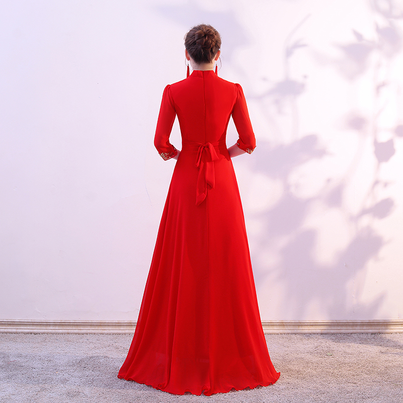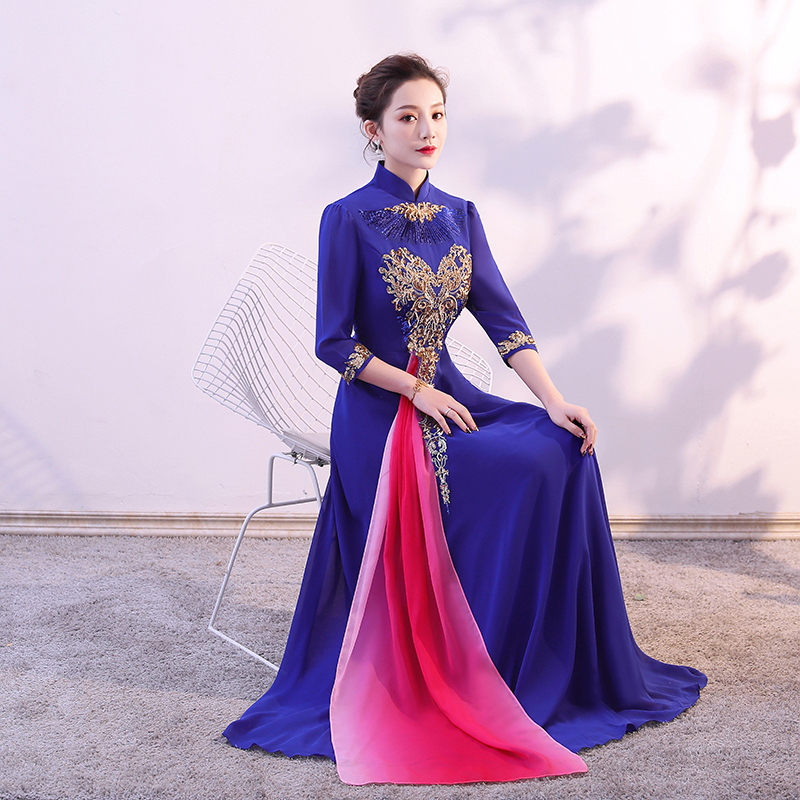 新款 亮片长裙礼服 大合唱演出服女成人中老年诗歌朗诵团体合唱服装