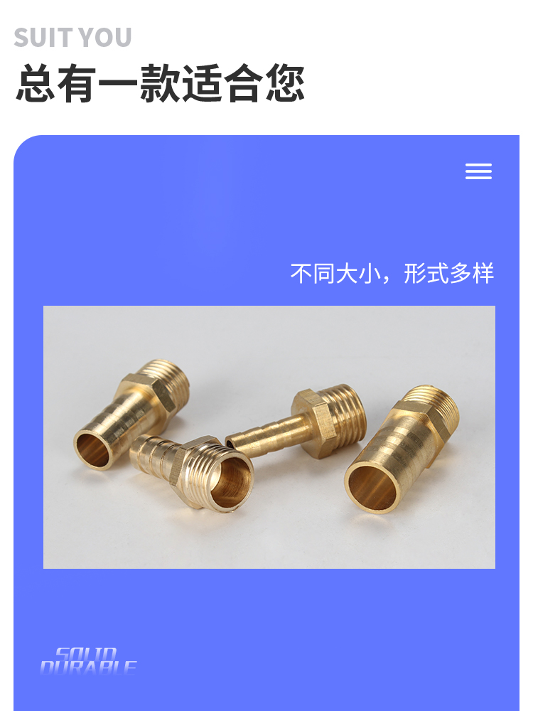 德力西宝塔接头PC铜6煤气燃气软管4分外牙螺纹快装 内外丝y三通变