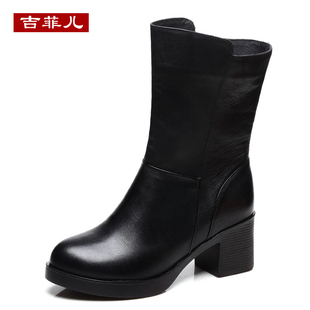 2025秋单鞋 中跟中筒靴女秋冬加绒靴子女靴 真皮高跟骑士靴粗跟新款