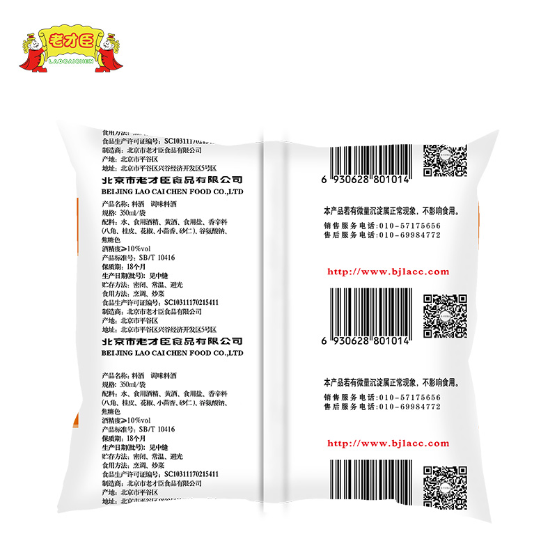 老才臣调味料酒350ml 黄酒料酒商用家用厨房烹饪提鲜去腥 6袋装