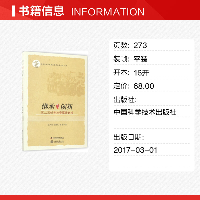 医学其它生活 社 张大庆 中国科学技术出版 图书籍 新华书店正版 著 饶毅 黎润红 五二三任务与青蒿素研发 继承与创新