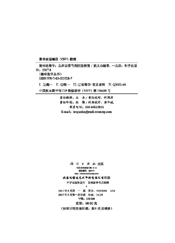 科学出版 趣味运筹学:从田忌赛马到囚徒困境 趣味数学丛书 9787030537287 社 熊义杰