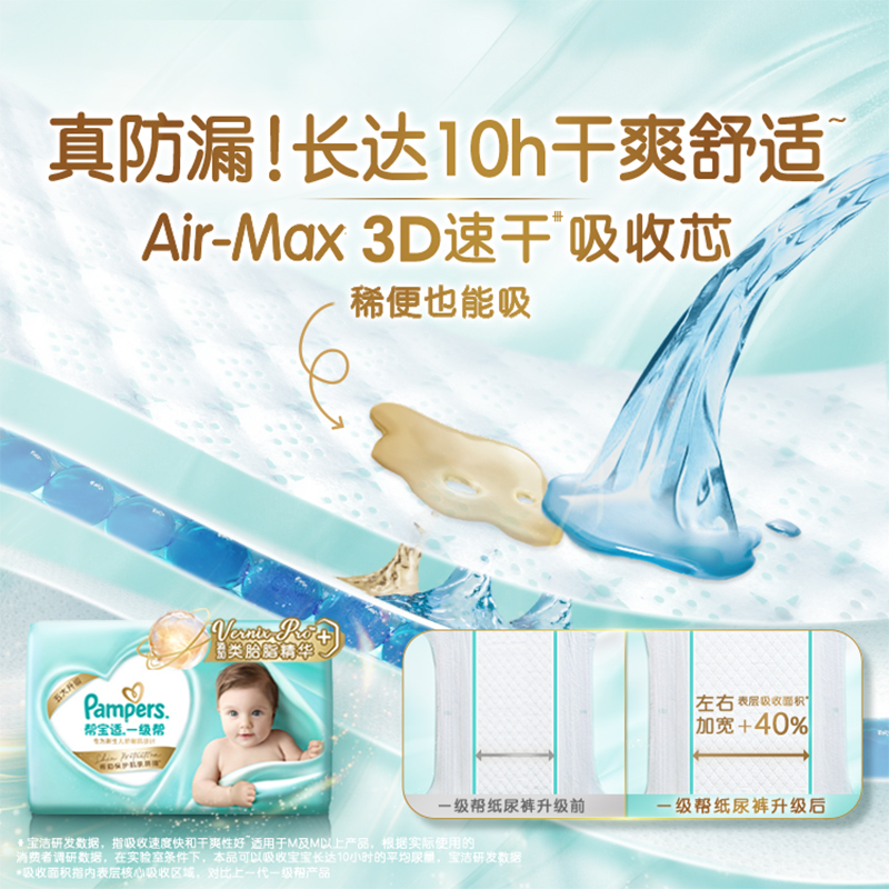 添加类胎脂超薄透气NB 帮宝适一级帮纸尿裤 S尿不湿 护臀级