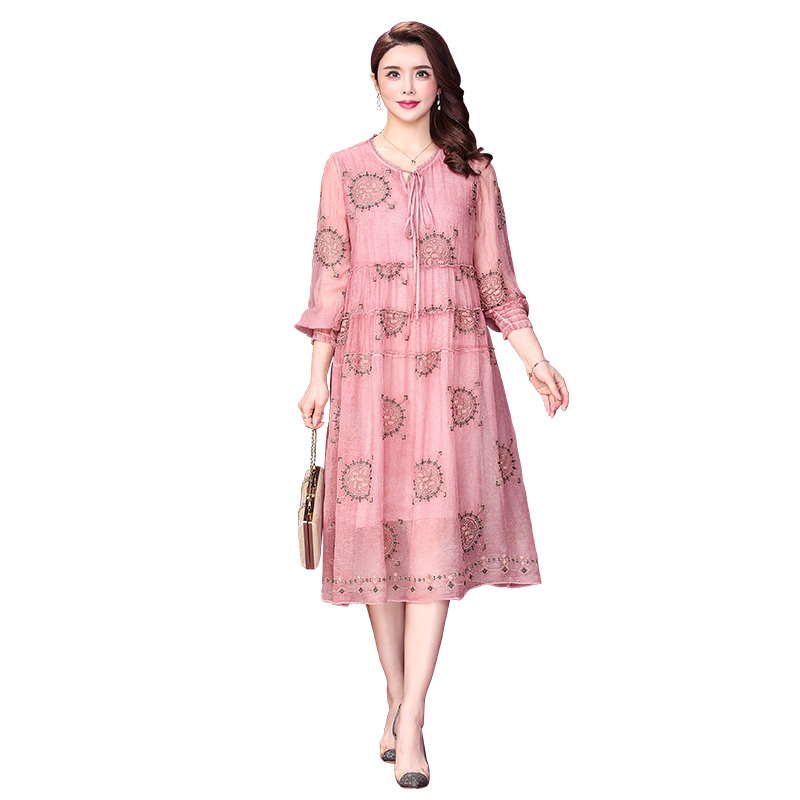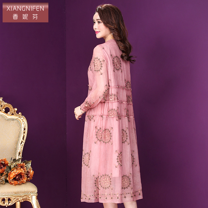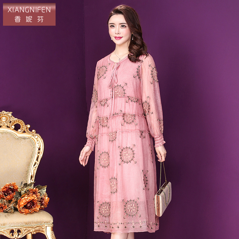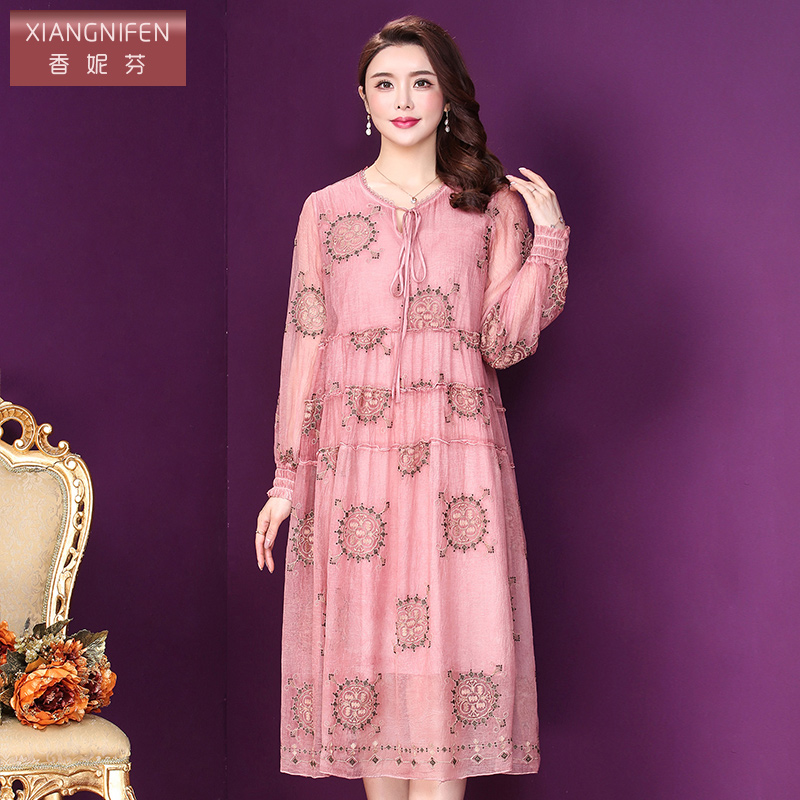 新款 2025秋季 过膝长裙桑蚕丝年轻款 香妮芬真丝连衣裙妈妈中长款