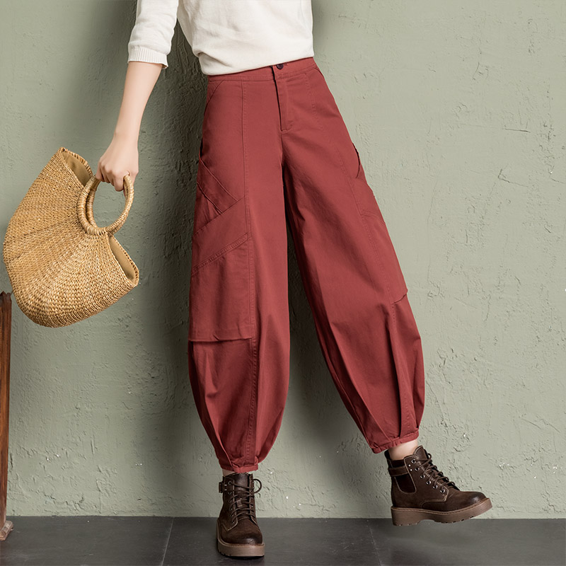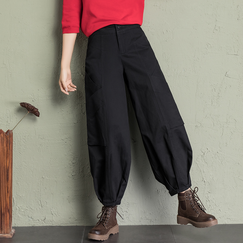 文艺显瘦阔腿老爹裤 纯棉灯笼裤 百搭休闲裤 九分2025新款 女高腰大码