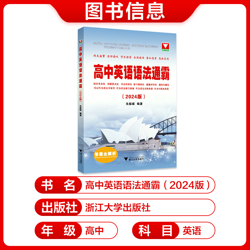 2025高中英语语法通霸浙大优学英语语法填空常考点精讲精练朱振斌编著语法专项训练题练习题高一高二高三高考真题试卷语法全国通用