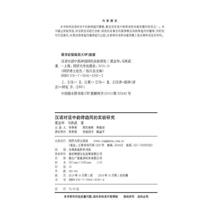同济博士论丛——汉语对话中韵律趋同 实验研究
