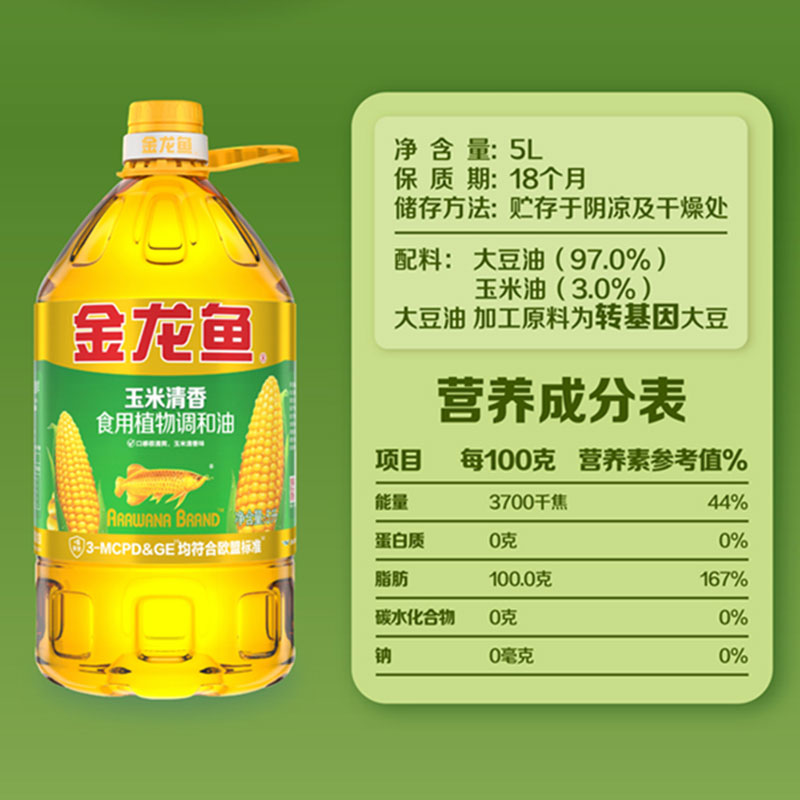 金龙鱼玉米清香型调和油5L桶装 家商用炒菜烹饪植物食用油色拉油