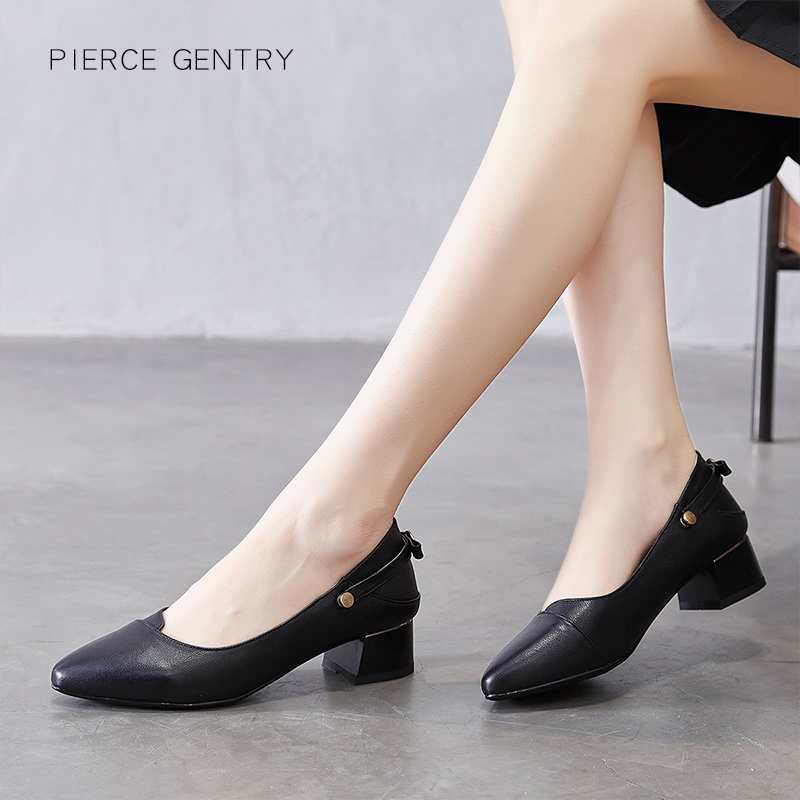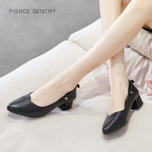 单鞋 羊皮浅口法式 千百度粗高跟鞋 异形跟职业通勤大码 静音系列
