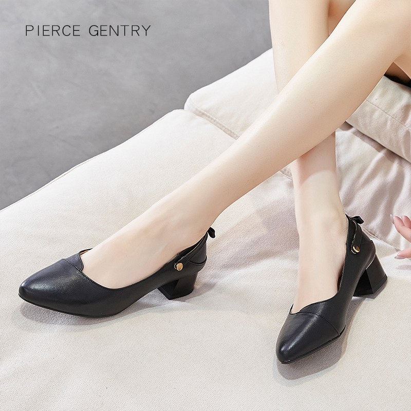 仙女风瓢鞋 秋季 浅口百搭中跟奶奶鞋 大码 真皮单鞋 女鞋 粗跟2025新款