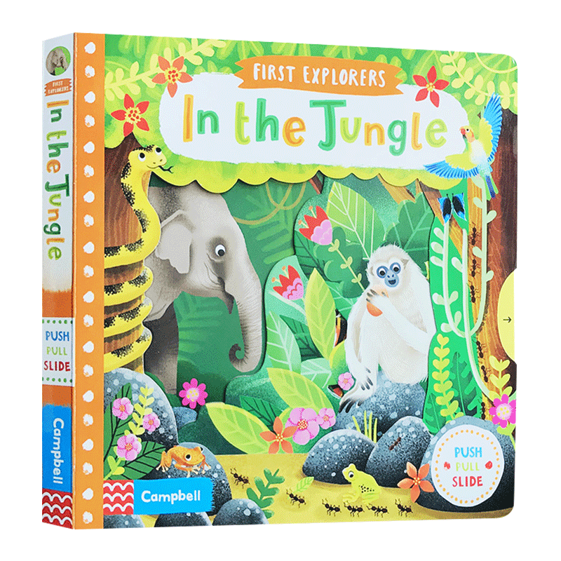 机关操作纸板书 幼儿趣味读物 丛林生物 the Explorers 小小探索家系列 First 儿童生物知识科普英语启蒙 英文原版 Jungle 绘本