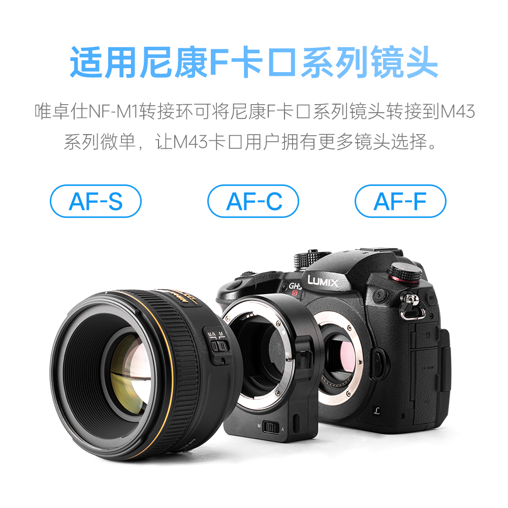 唯卓仕NF 微单BMPCC相机适配器 M43转接环适用于尼康F单反镜头转M43卡口适用于松下奥林巴斯em10数码