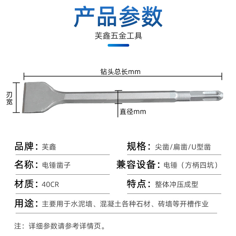 电锤凿子冲击钻头电镐头尖扁凿子混凝土电锤开墙壁铲子方圆柄镐钎
