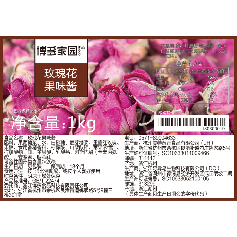 博多家园热卖 玫瑰酱水果花茶奶品店餐饮甜品专用原料1kg