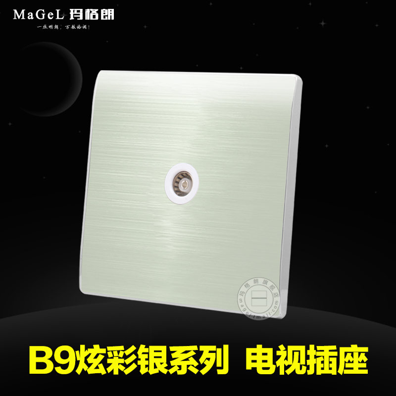 闭路电视插座一位墙壁86型天线TV插座有线电视面板插座铝合金白色