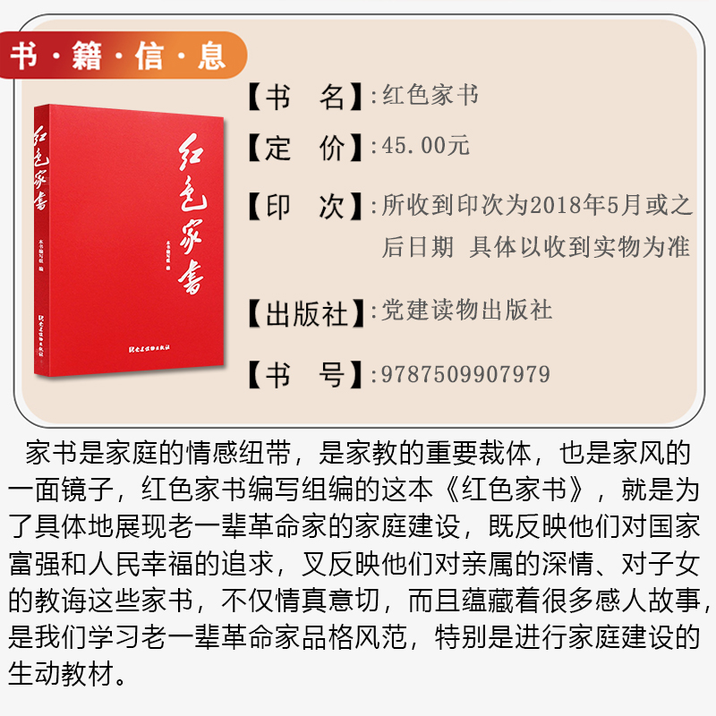 红色家书 党建读物出版 117封毛泽东周恩来等老一辈革命家 红色精神家风家训 社9787509907979 家书信件整理回顾品读中国经典 正版