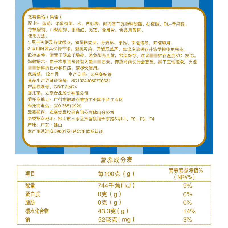 拯救蓝莓蛋糕新仙尼蓝莓果馅3KG有颗粒蛋糕夹心专用烘焙批发原料