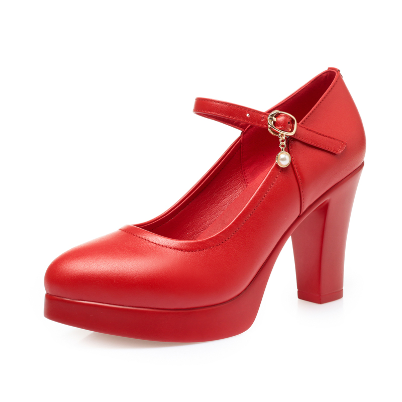 女士中老年妈妈皮鞋 中跟小皮鞋 软 真皮一字扣女单鞋 旗袍走秀高跟鞋