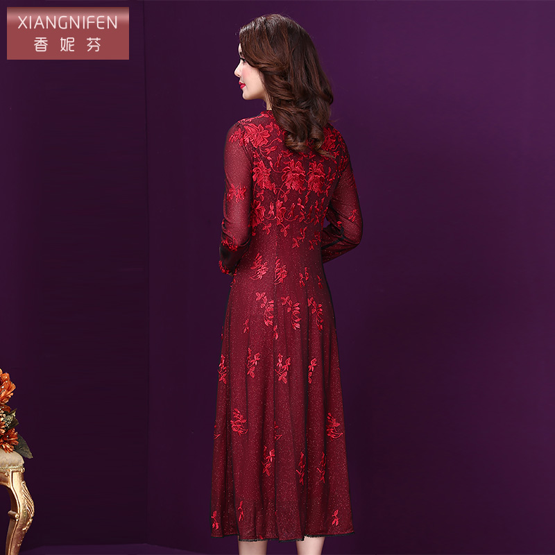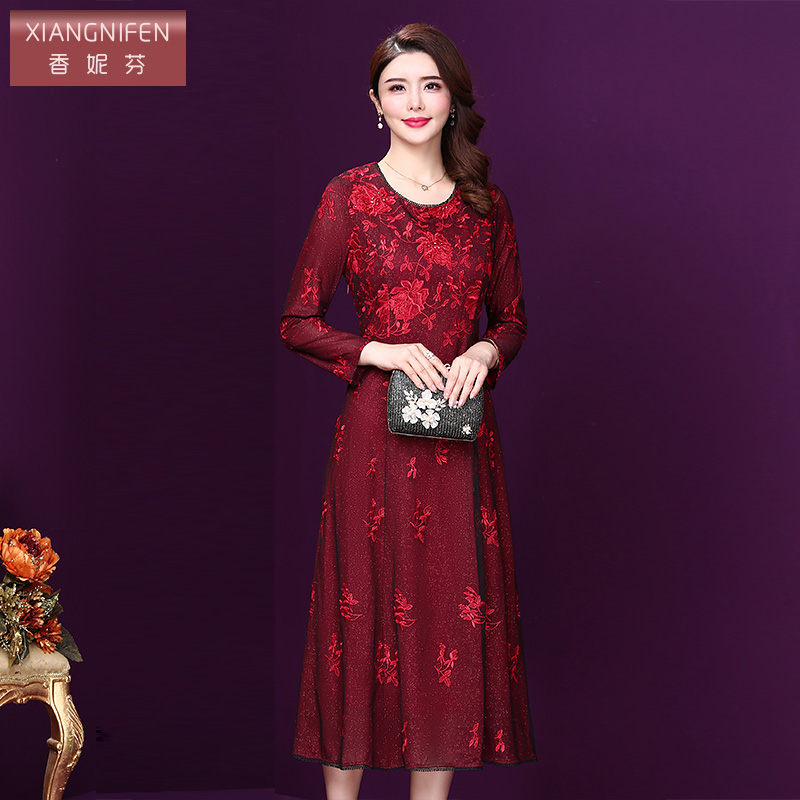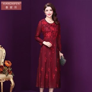 连衣裙女 网纱刺绣长款 香妮芬2025秋装 婚礼妈妈礼服高贵气质婚宴装