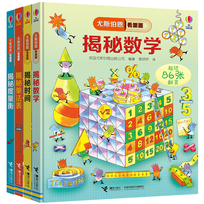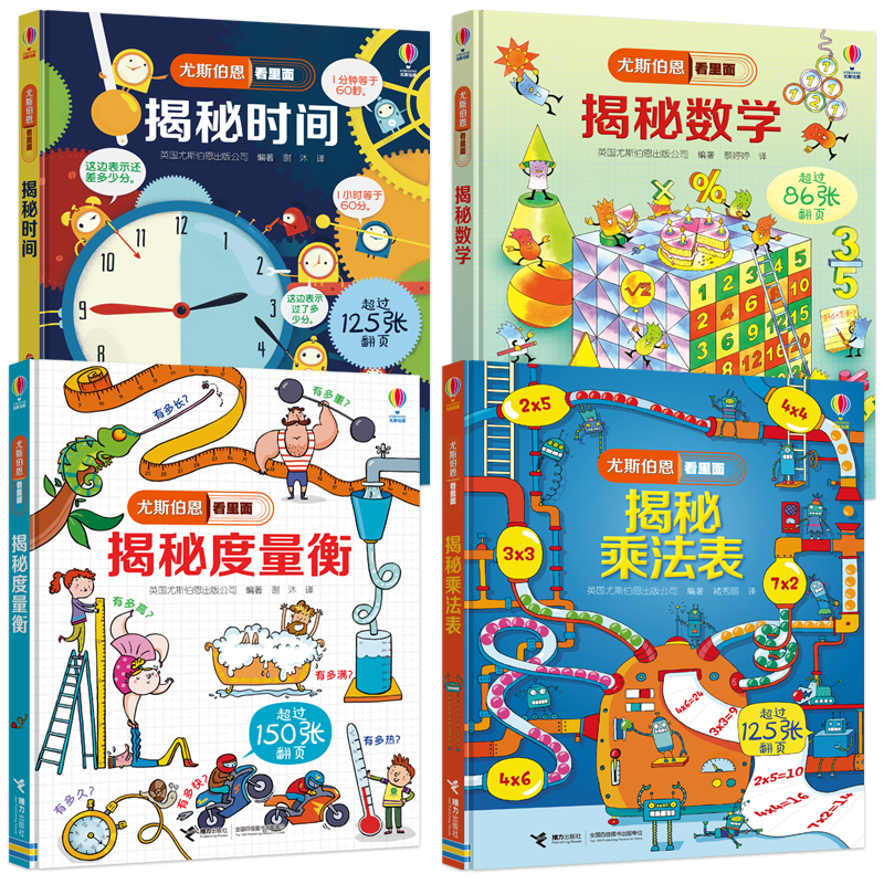 9岁幼儿童益智游戏认知启蒙绘本学校推荐 尤斯伯恩看里面系列全套4册精装 3D立体翻翻书揭秘数学乘法表时间度量衡3 科普百科书籍 版