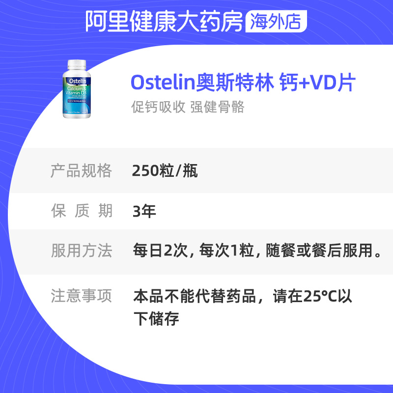 Ostelin奥斯特林成人维生素VD3钙片孕妇中老年补钙澳洲250粒