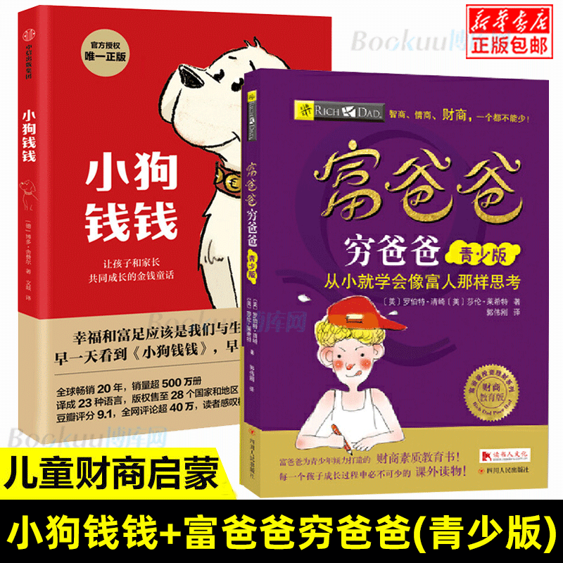 富爸爸穷爸爸青少版 全套共2册 财富启蒙6 正版 12岁小学生课外书儿童财商教育家庭理财童话书籍原版 小狗钱钱1 包邮