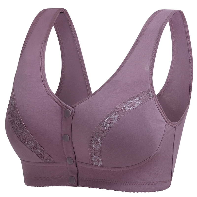 女薄款 妈妈内衣文胸中老年人纯全棉前扣胸罩背心式 聚拢无钢圈大码