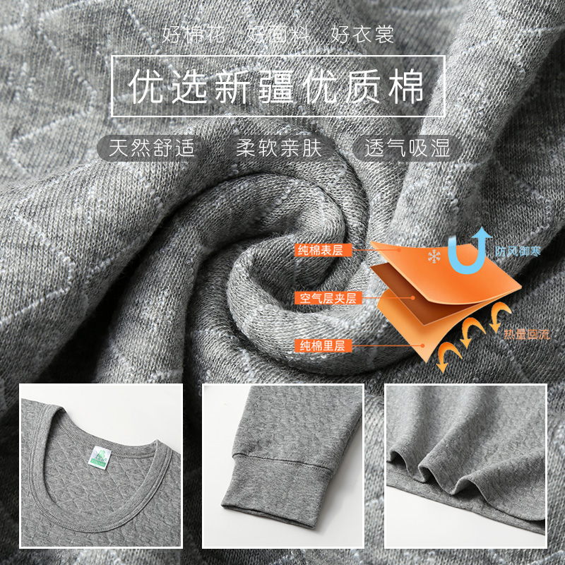 宽松单件棉毛衫 AB内衣中老年秋冬季 纯棉三层加厚保暖上衣爸妈大码