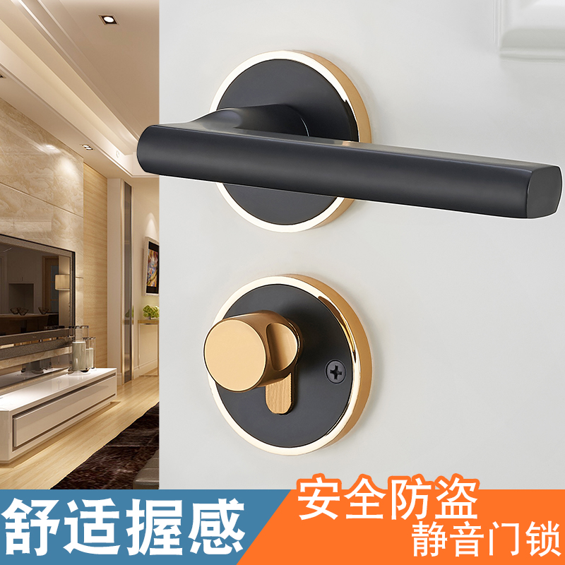 欧式 室内卧室门锁黑色木门房门家用通用型卫生间分体静音门把手