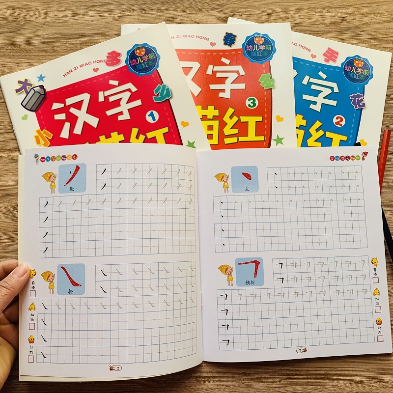 全套4本汉字描红本幼儿童3 6岁看图识字写字笔画笔顺描红幼儿园学前学写字练字本小学生汉子描红写字本学前儿童铅笔临摹宝宝识字