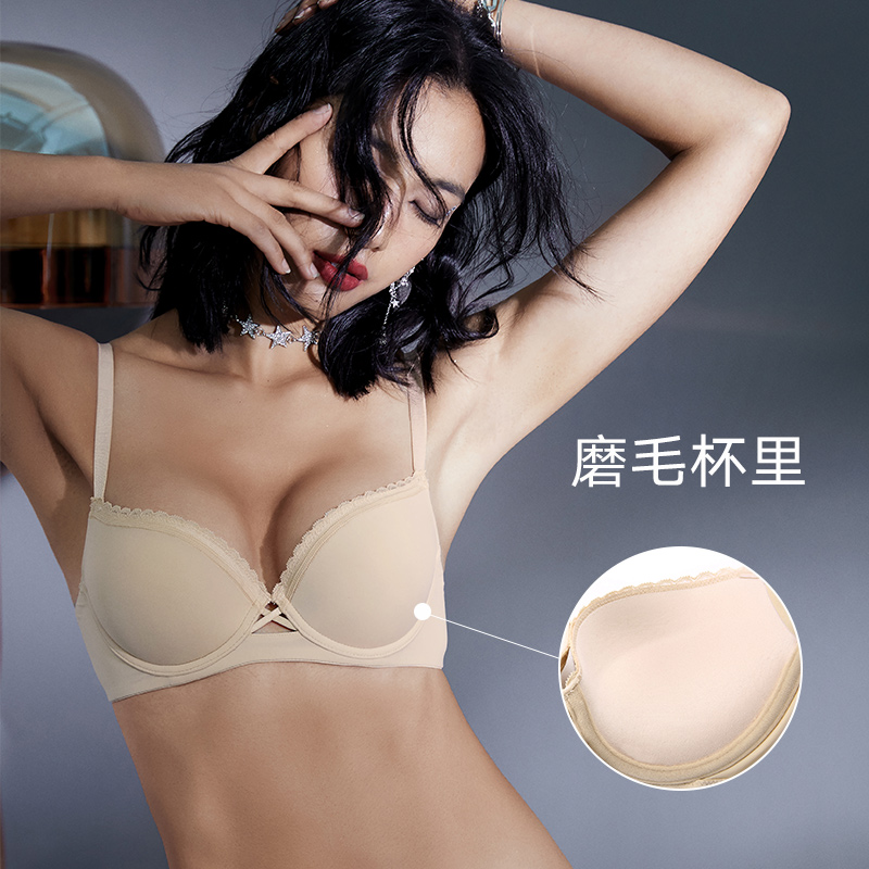 布迪设计 无痕光面本命年红色美背内衣女小胸聚拢性感文胸深V胸罩