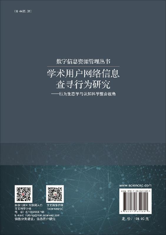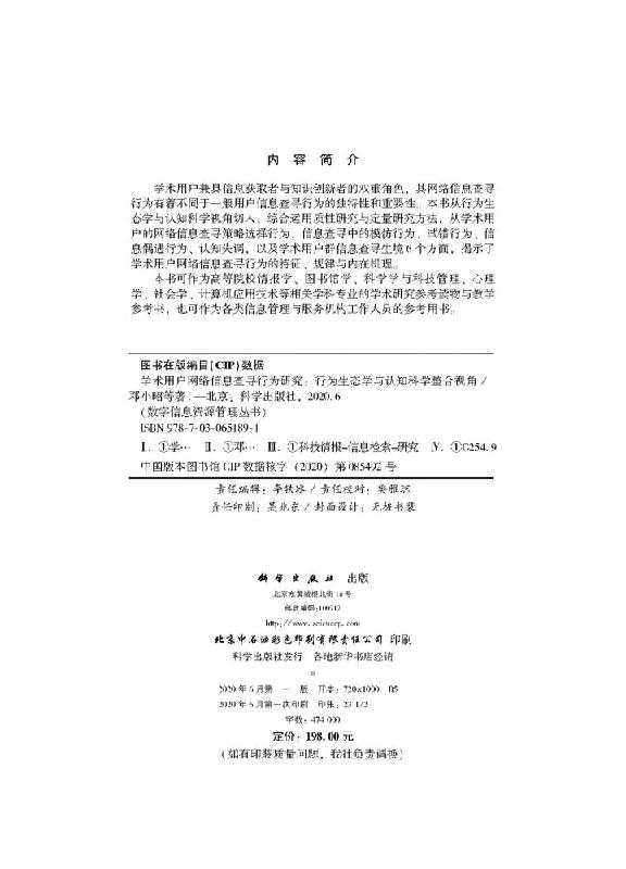 科学出版 正版 邓小昭等 学术用户网络信息查寻行为研究——行为生态学与认知科学整合视角 社 现货