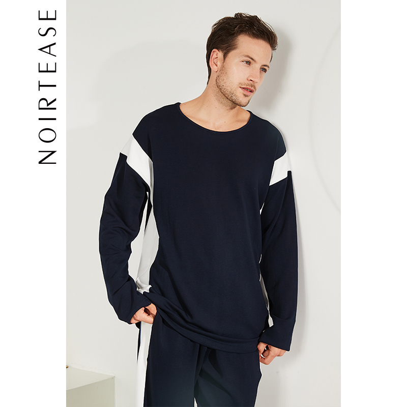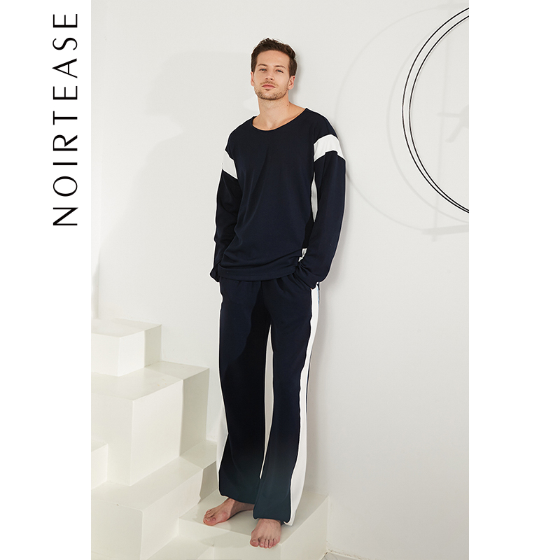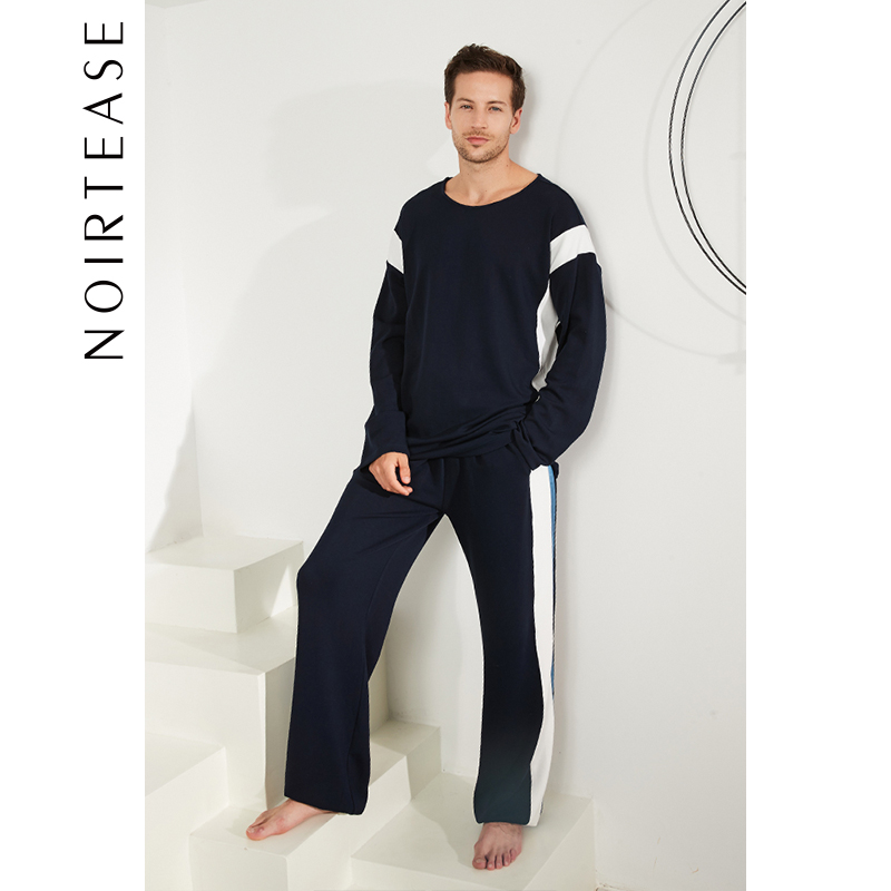 全棉家居服套装 芬腾情侣睡衣女春秋款 圆领套头男大码 男士 纯棉长袖