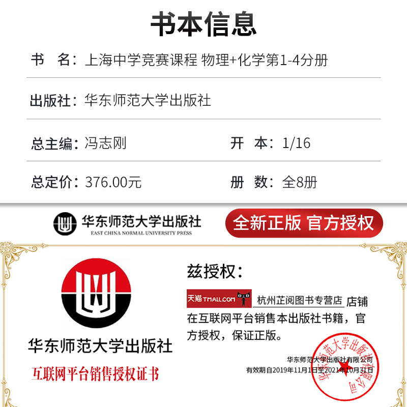 中学教辅书思维训练奥数教程高中 中学化学物理竞赛教程辅导高一高二高三通用奥赛指导 上海中学竞赛课程物理化学 第一二三四分册